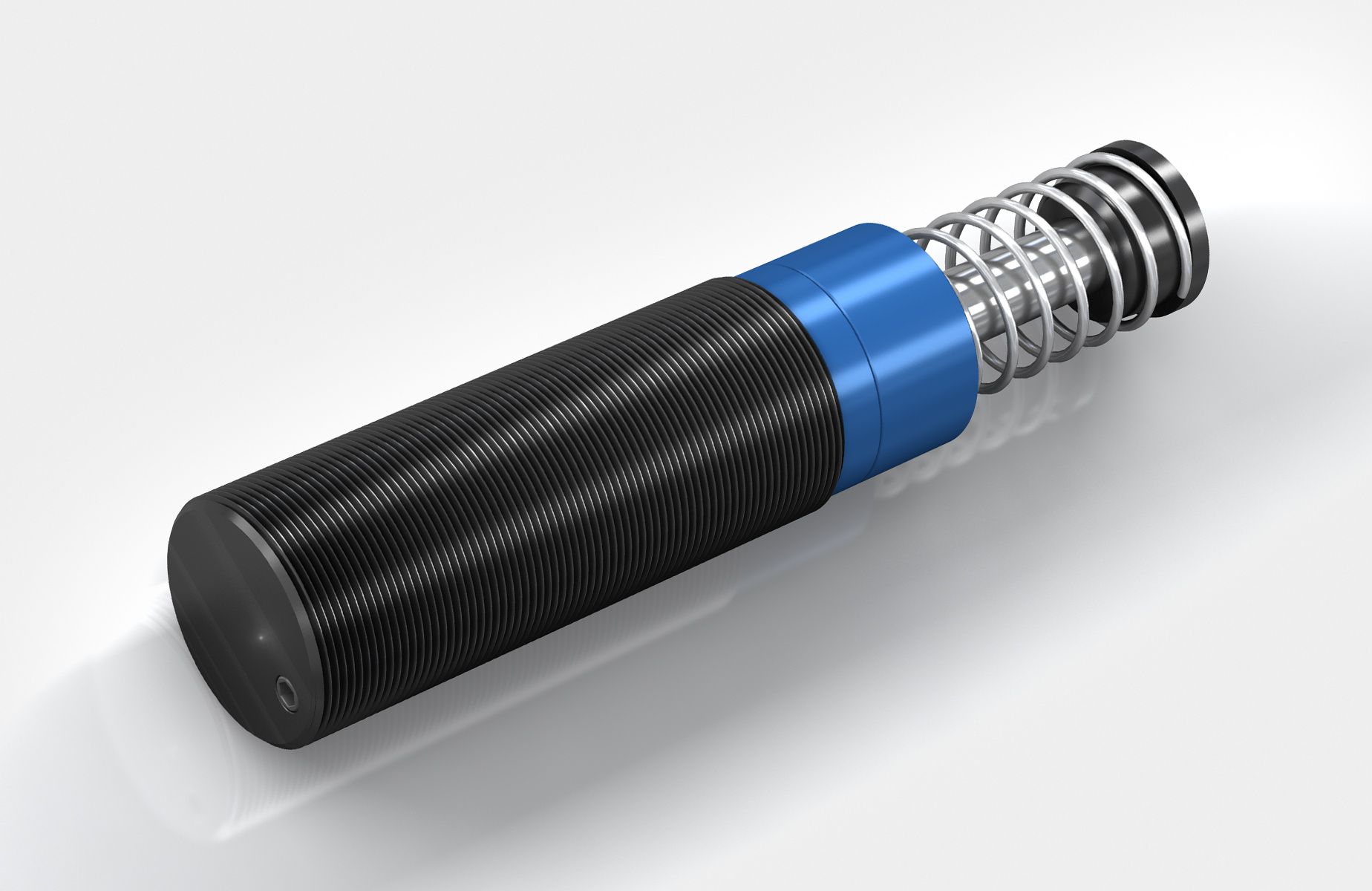 ACE safety shock absorber in the end position of the test stand after point-precise absorption of the inertial forces of the slide